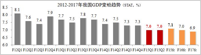 国家统计局最新公布数据,2015年上半年我国GDP同比增速为7%,其中第一季度和第二季度同比增速均为7%,经济运行趋于稳定。世界银行在7月上旬公布的《中国经济简报》预测,2015年中国经济增速为7.1%,随后三年将按0.1个百分点的速度回落。总体而言,未来几年我国经济增速将呈现逐步放缓的趋势,其主要原因取决于结构性改革进程。
