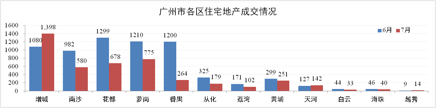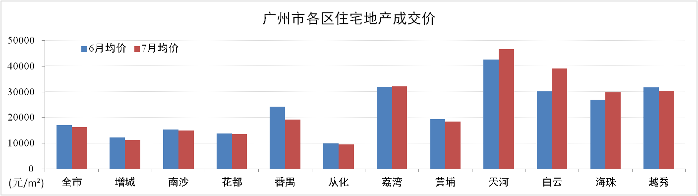 分析认为:7月全市成交价格略低于6月平均价格,部分区域出现价格波动,淡季影响价格下跌。预计在未来一段时间内,加上指导价政策的再次强调颁布,广州市一手住宅成交均价将继续呈现可控的回落态势。