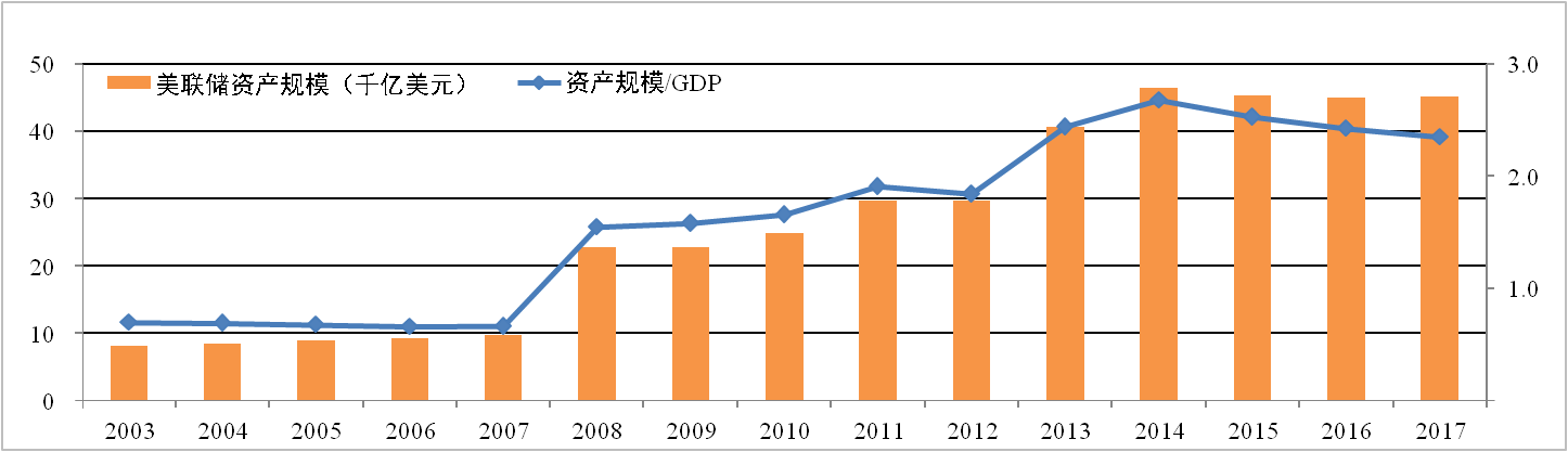 分析认为:近几年的美联储资产规模创下了近百年新高,且大幅高于 GDP,缩表势在必行。但美国通胀持续疲软,加息前景难以预料,预计缩表对 美元走势无明显影响。