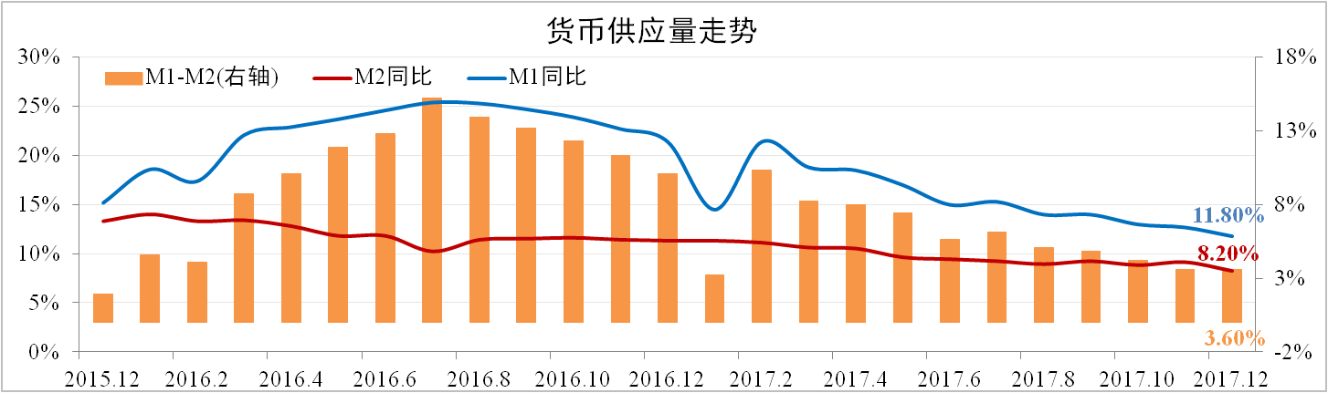 分析认为:金融机构持有的M2下降导致货币供应大幅收缩。一方面年底放贷额度受限,对存款需求上升;另一方面监管趋严使得资金供应不足。实体经济融资需求旺盛叠加央行春节定向降准,预计1季度货币供应将出现反弹。