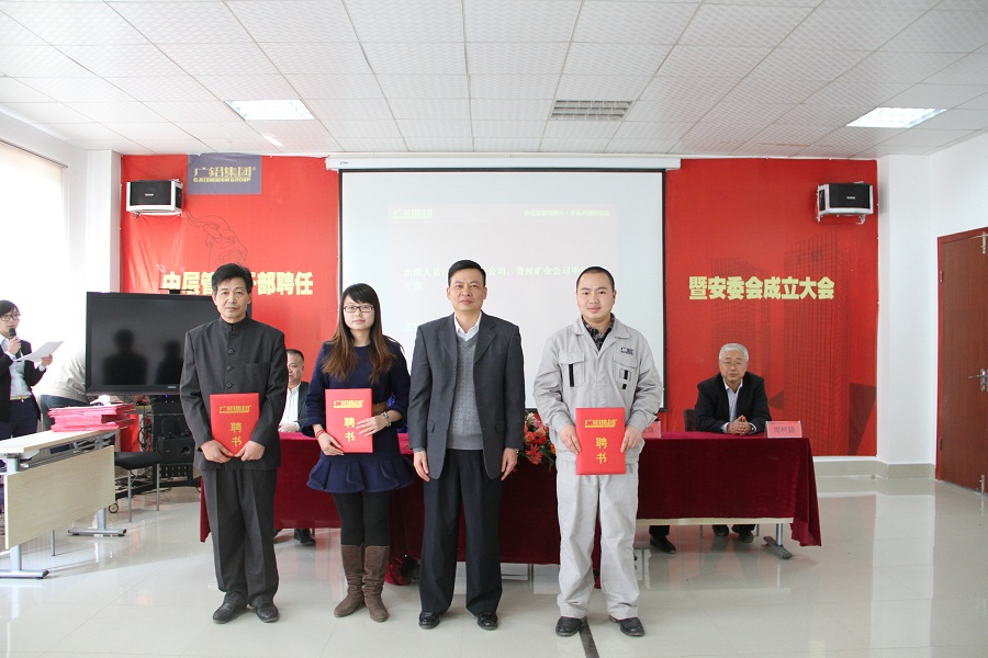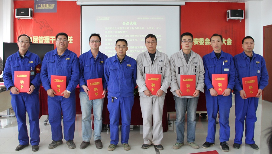 发稿时间:2015-01-152015年1月13日,贵州铝业公司和贵州矿业公司2015年中层管理干部聘任大会暨安全环保责任人任命大会在贵州铝业公司综合办公楼五楼会议室隆重举行。公司董事长叶永标、矿业公司总经理张战旗以及生产总经理唐俊分别为2015年度中层管理干部颁发了聘书。