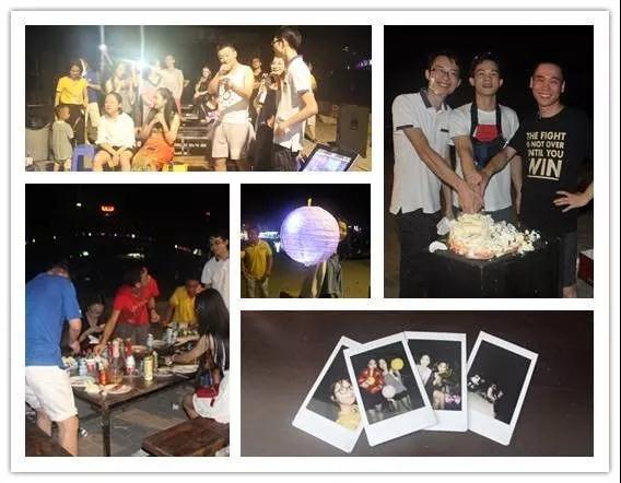 大家不仅在沙滩玩起了疯狂的团建游戏,而且还办起了烧烤派对。啤酒、串串,还有生日蛋糕,9月份生日的宝贝们一起庆生,大家在沙滩边拿着灯笼赏月,浪漫又激情。