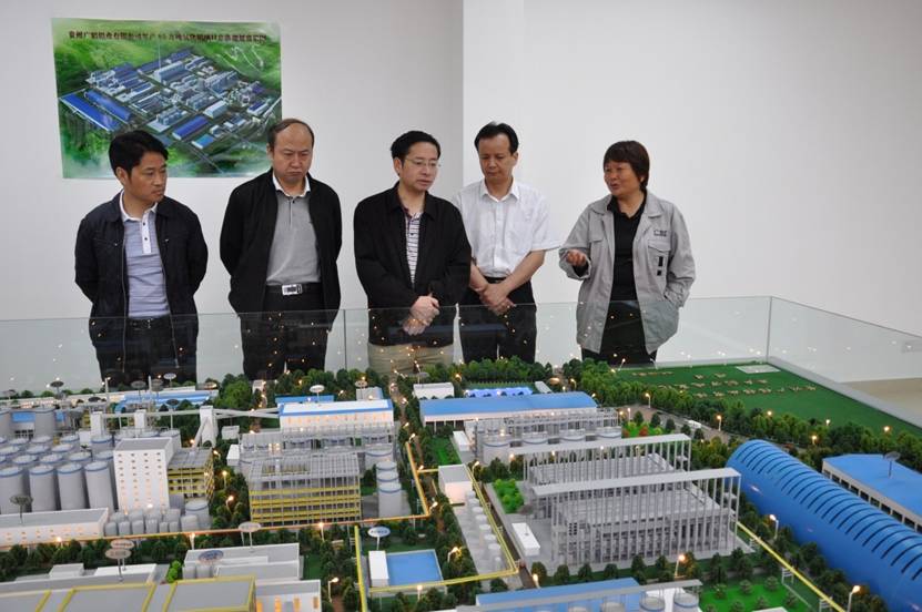 首先,杨局长等领导兴致勃勃地参观了企业展厅。在氧化铝总体规划模型前,总工程师罗敏详细介绍了贵州公司年产80万吨氧化铝项目“占地面积最小”、“综合能耗最低”、“单一产能最大”三大突出优势,并向杨局长汇报了项目当前建设进展情况。杨局长认真听取罗总工程师的汇报后,对贵州公司的发展思路以及环保理念给予了充分肯定。